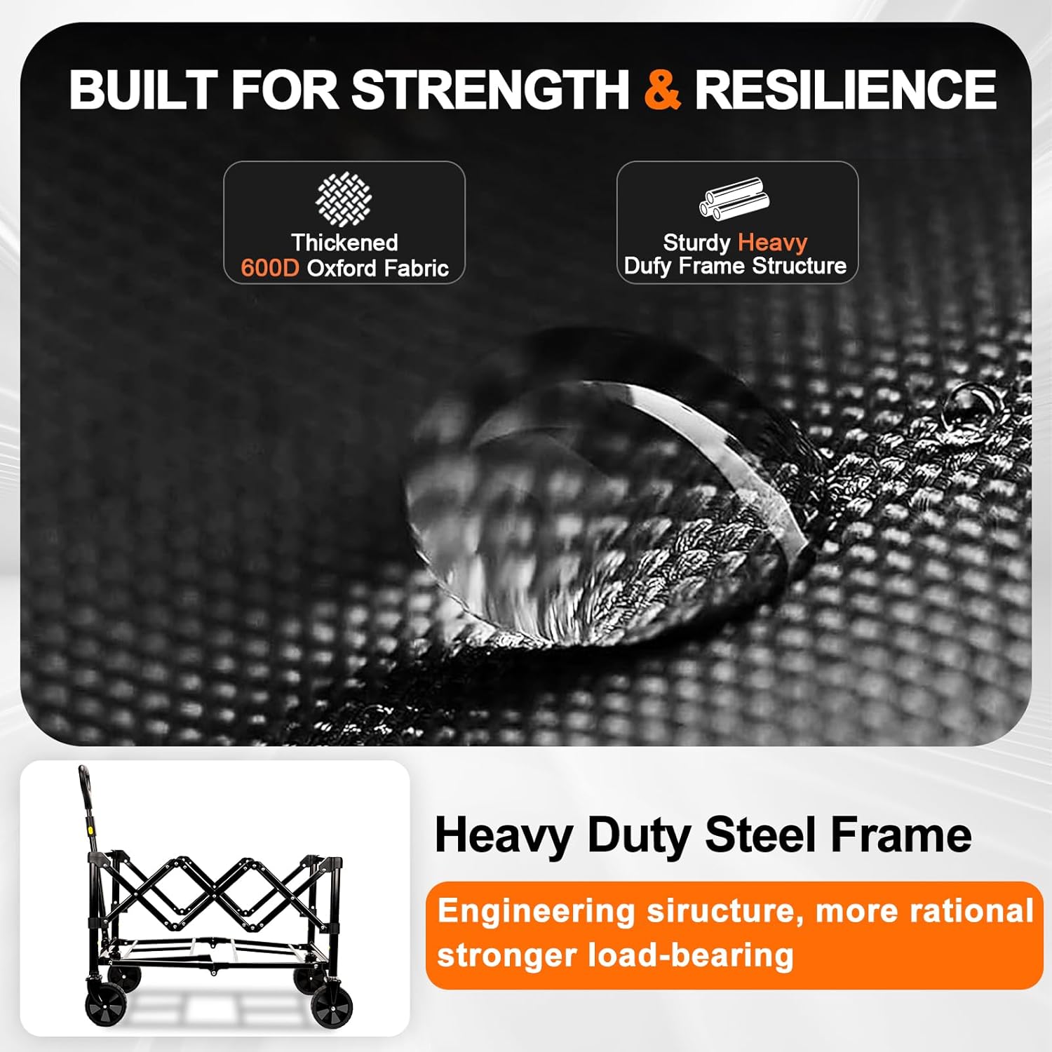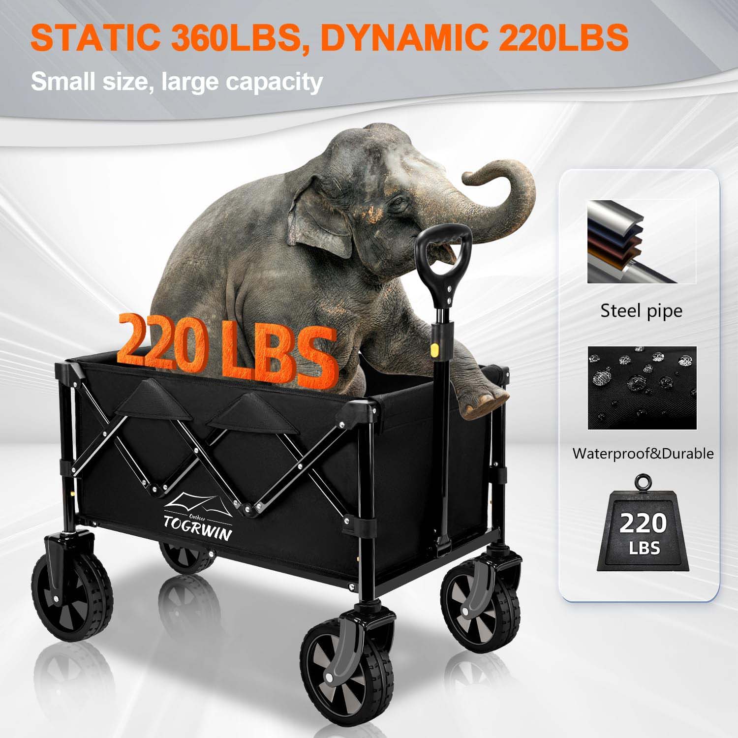 Großkapazität - Haltbarer zusammenkapsibler Wagen: Der zusammenklappbare Wagen hat eine Expansionsgröße von 26,1 "x 16,9" x 36,6 "(L*W*H) und lastet bis zu 220 Pfund, was alle Waren tragen kann, die Ihre Familie für das Camping im Freien im Freien benötigt. Der Wagenkörper besteht aus leichtem Hörwagen. Vom Rosten.